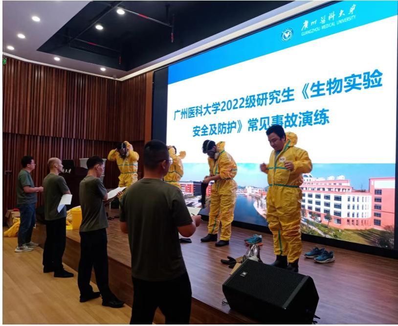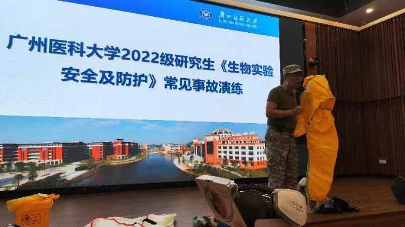 为增强广大师生的安全防范意识和防灾避险能力,提高实验室应急处置工作水平,近日,我校在越秀校区开展2022级研究生《生物实验安全及防护》常见事故应急演练培训。科研实验中心邀请了应急救援领域的专业培训团队进行现场指导,200余名师生参加培训。