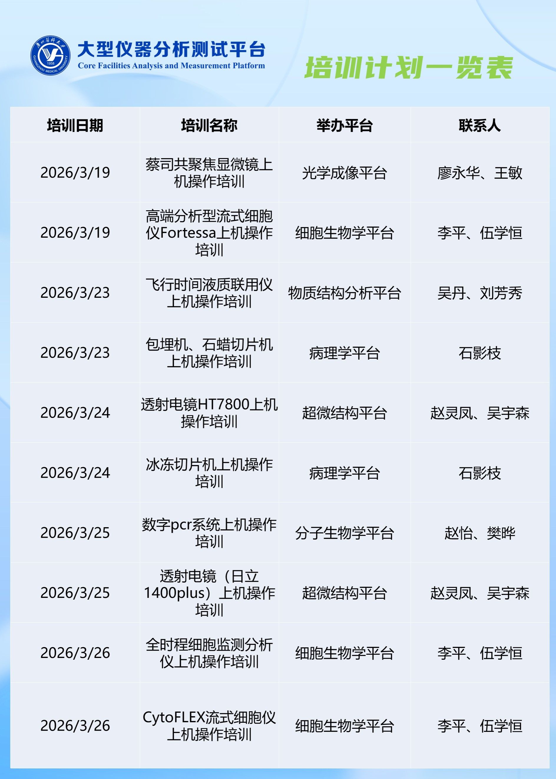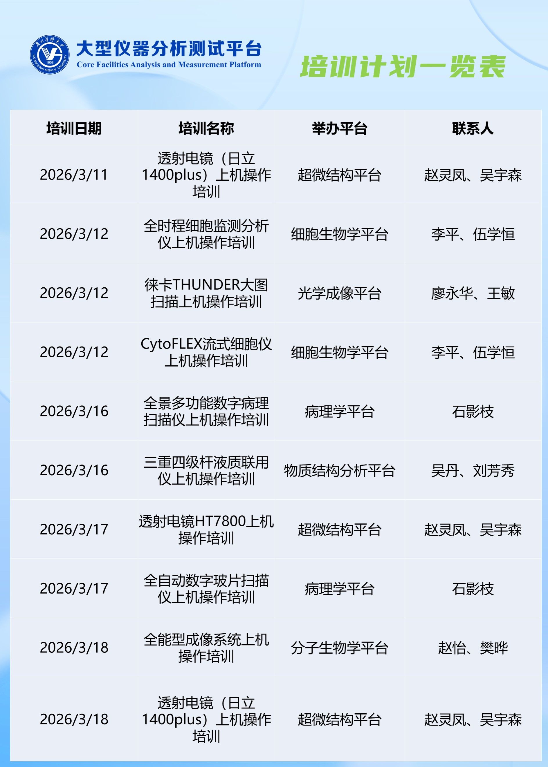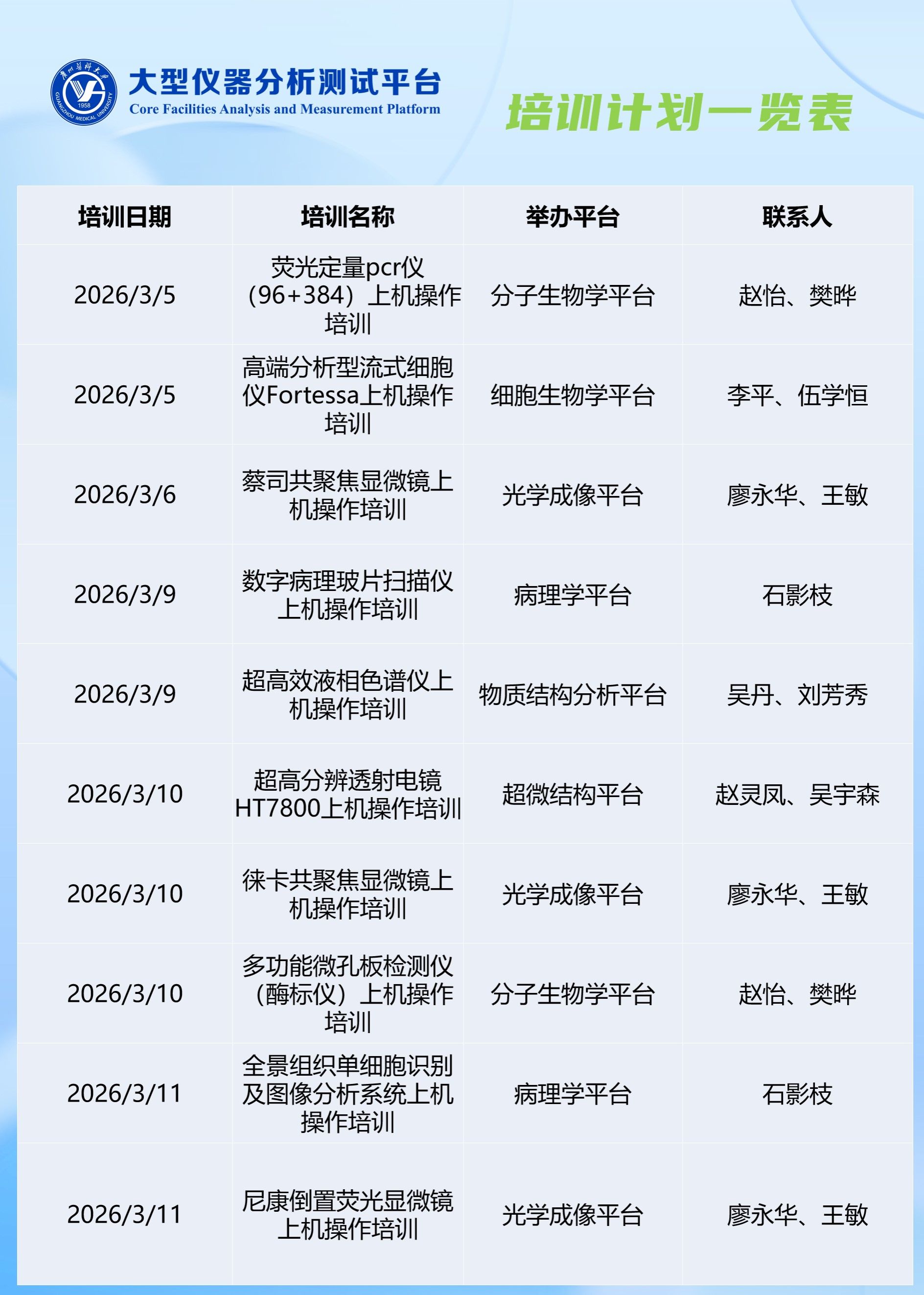 2026年3月科研实验中心-大型仪器分析测试平台培训计划