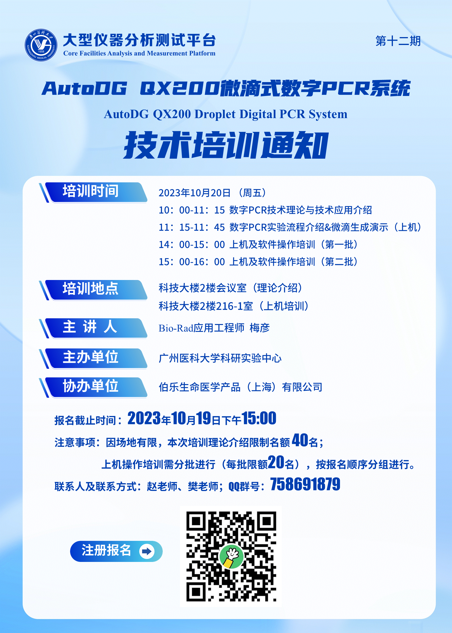 【第12期】AutoDG QX200微滴式数字PCR系统技术培训通知