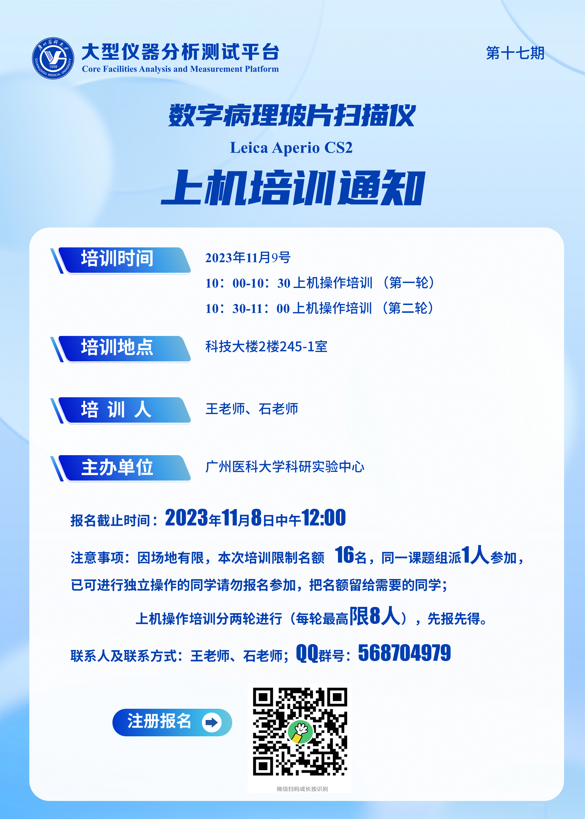 【第17期】数字病理玻片扫描仪(Leica Aperio CS2)技术培训
