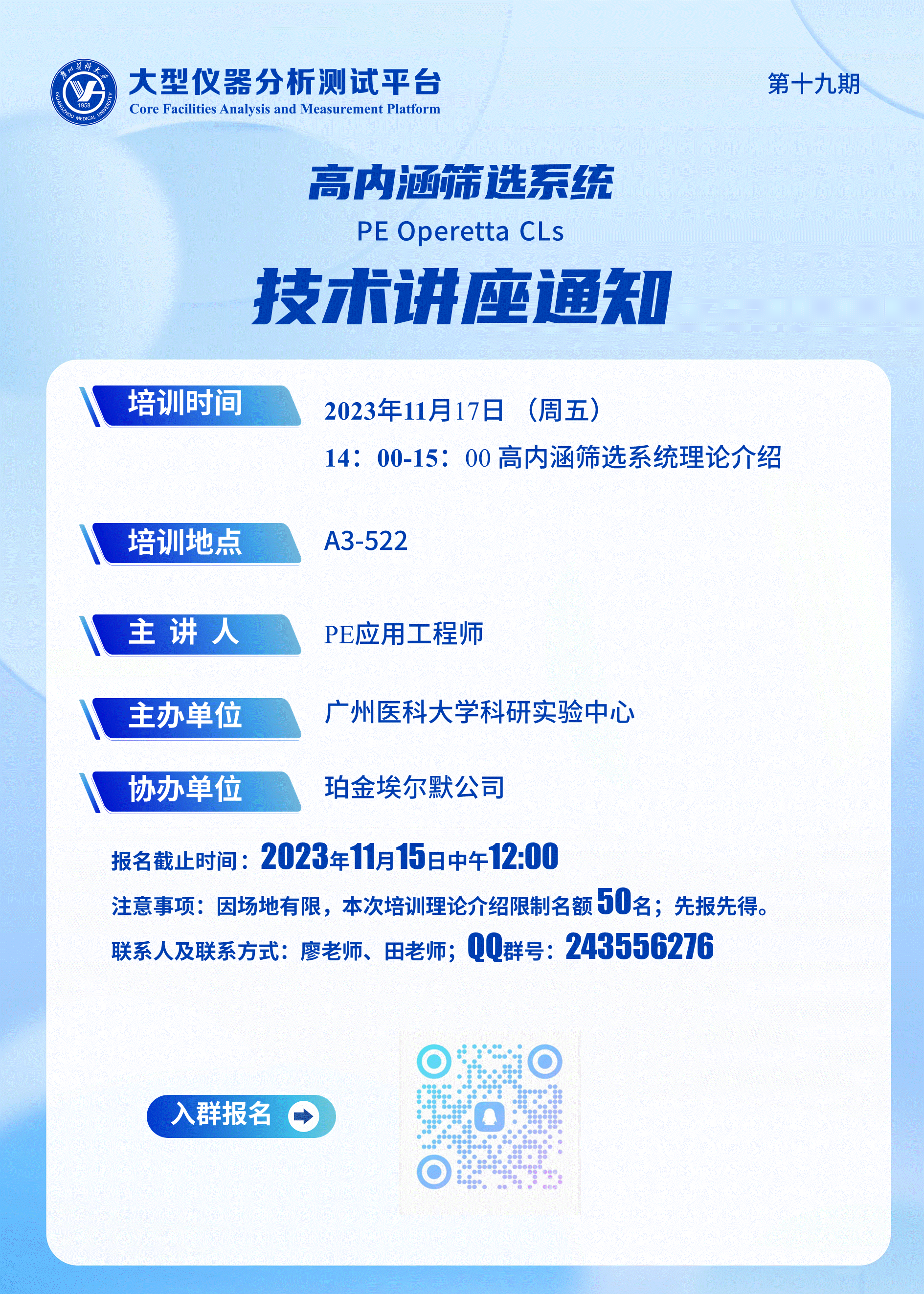 【第19期】高内涵筛选系统(PE Operetta CLs)理论介绍技术讲座