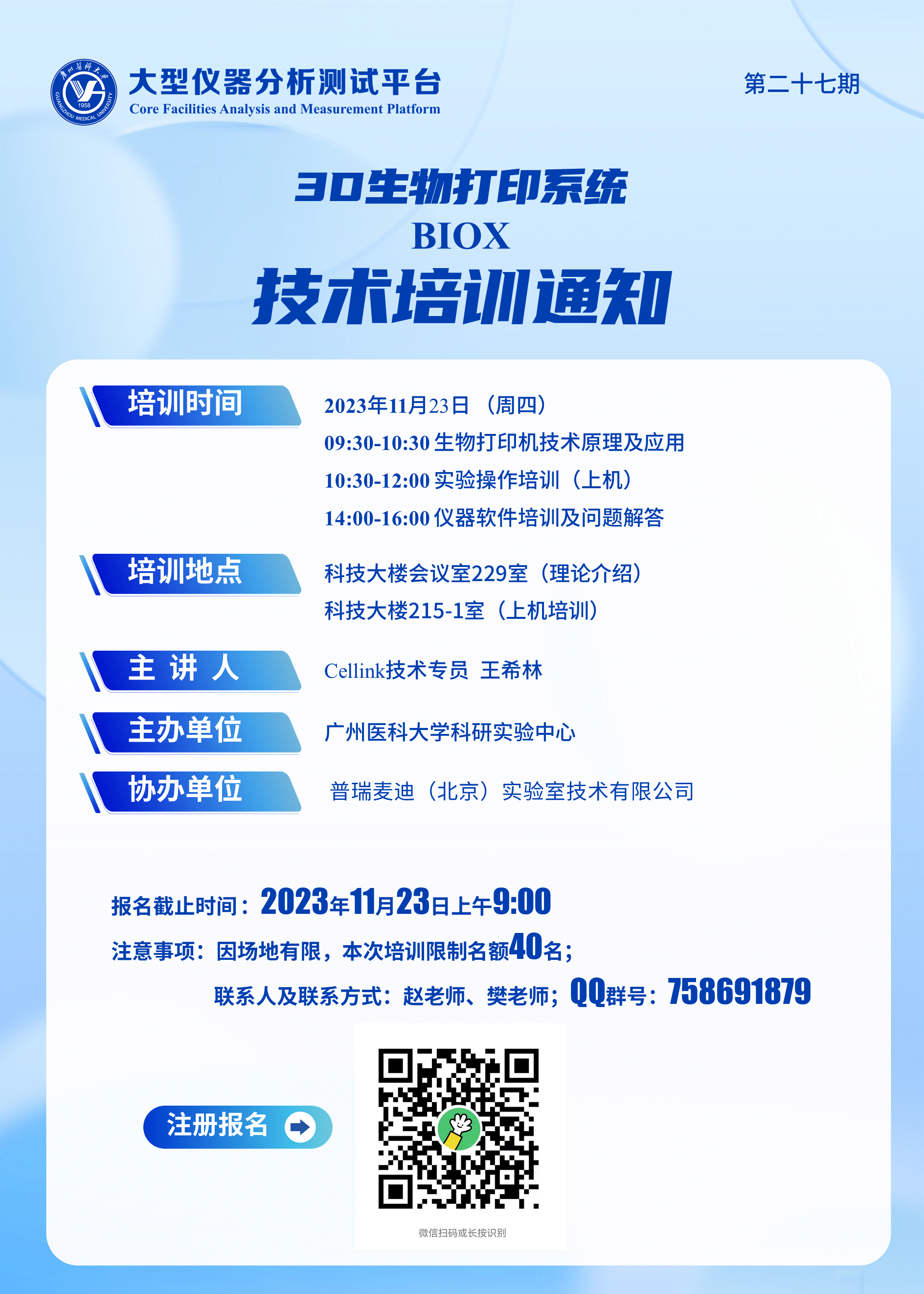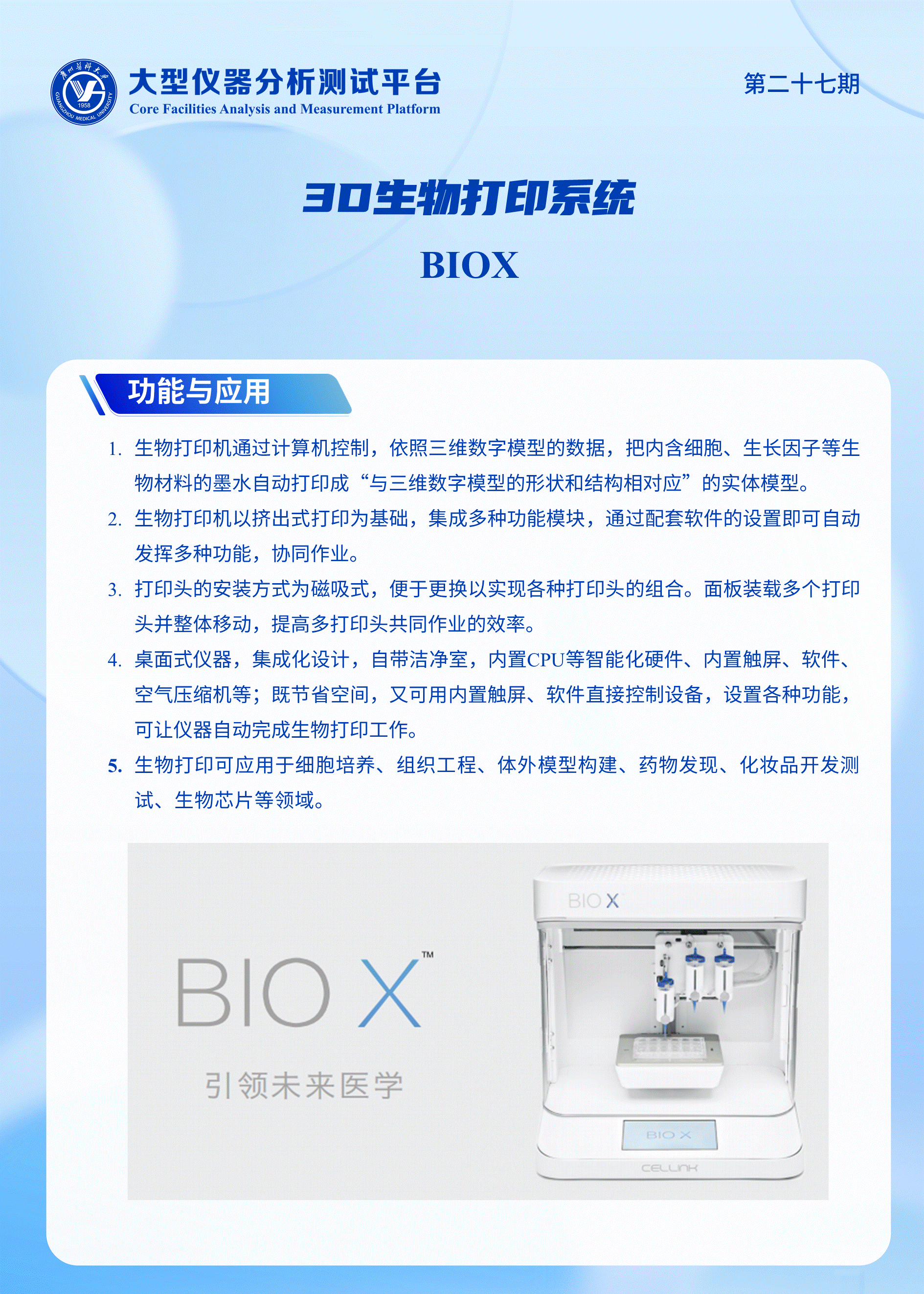 【第27期】3D生物打印系统(BIOX) 技术培训通知