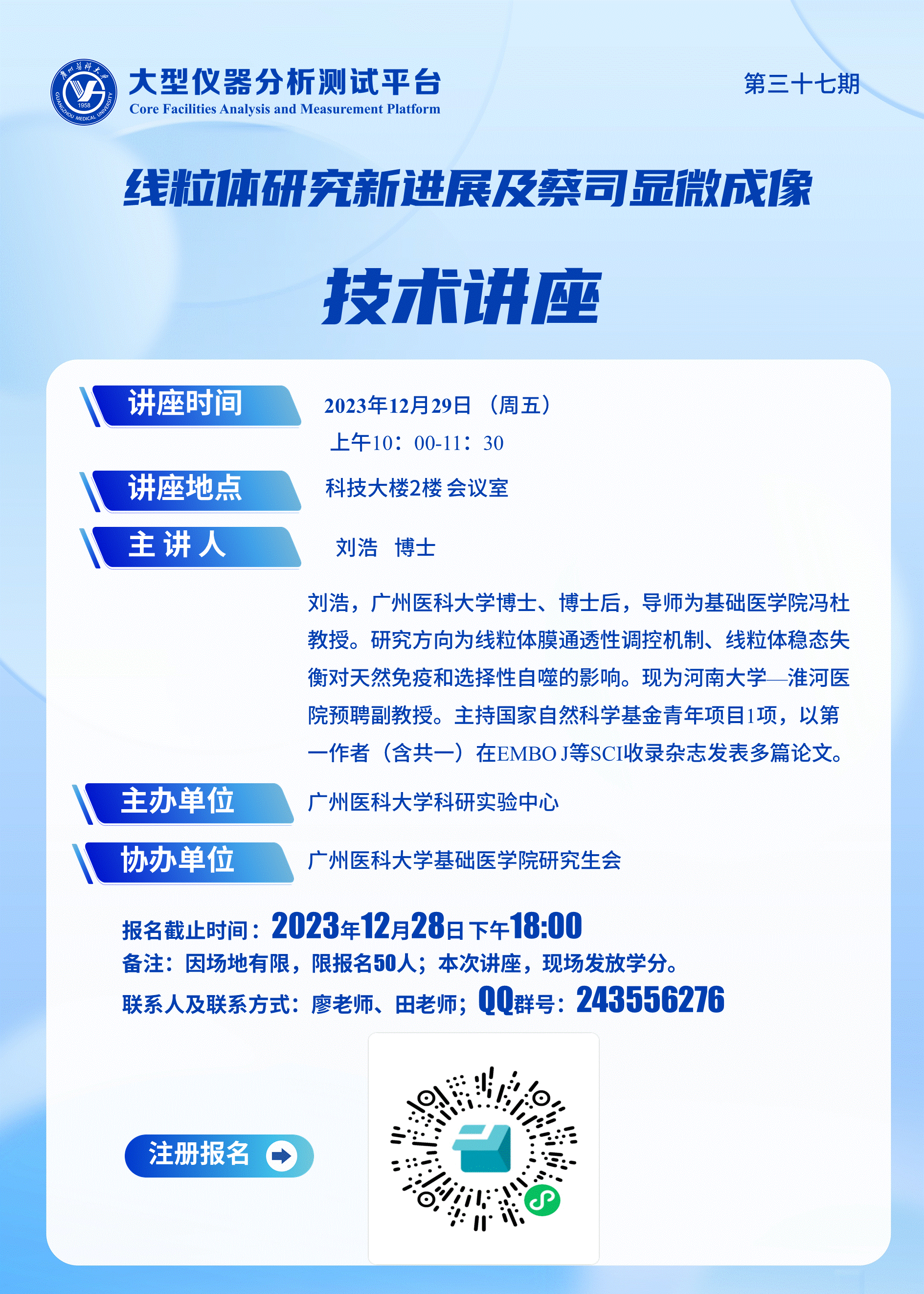 【第37期】线粒体研究新进展及蔡司显微成像技术讲座