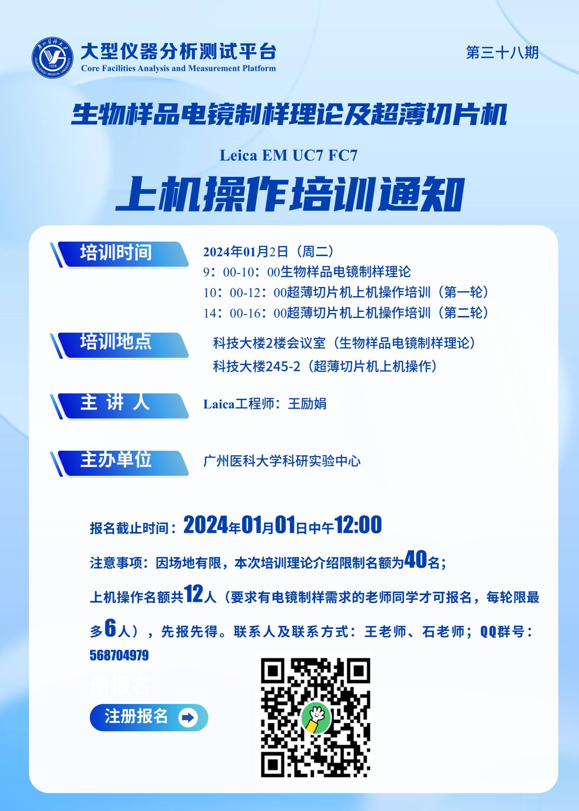 【第38期】生物样品电镜制样理论及超薄切片机(Leica EM UC7 FC7)技术培训通知